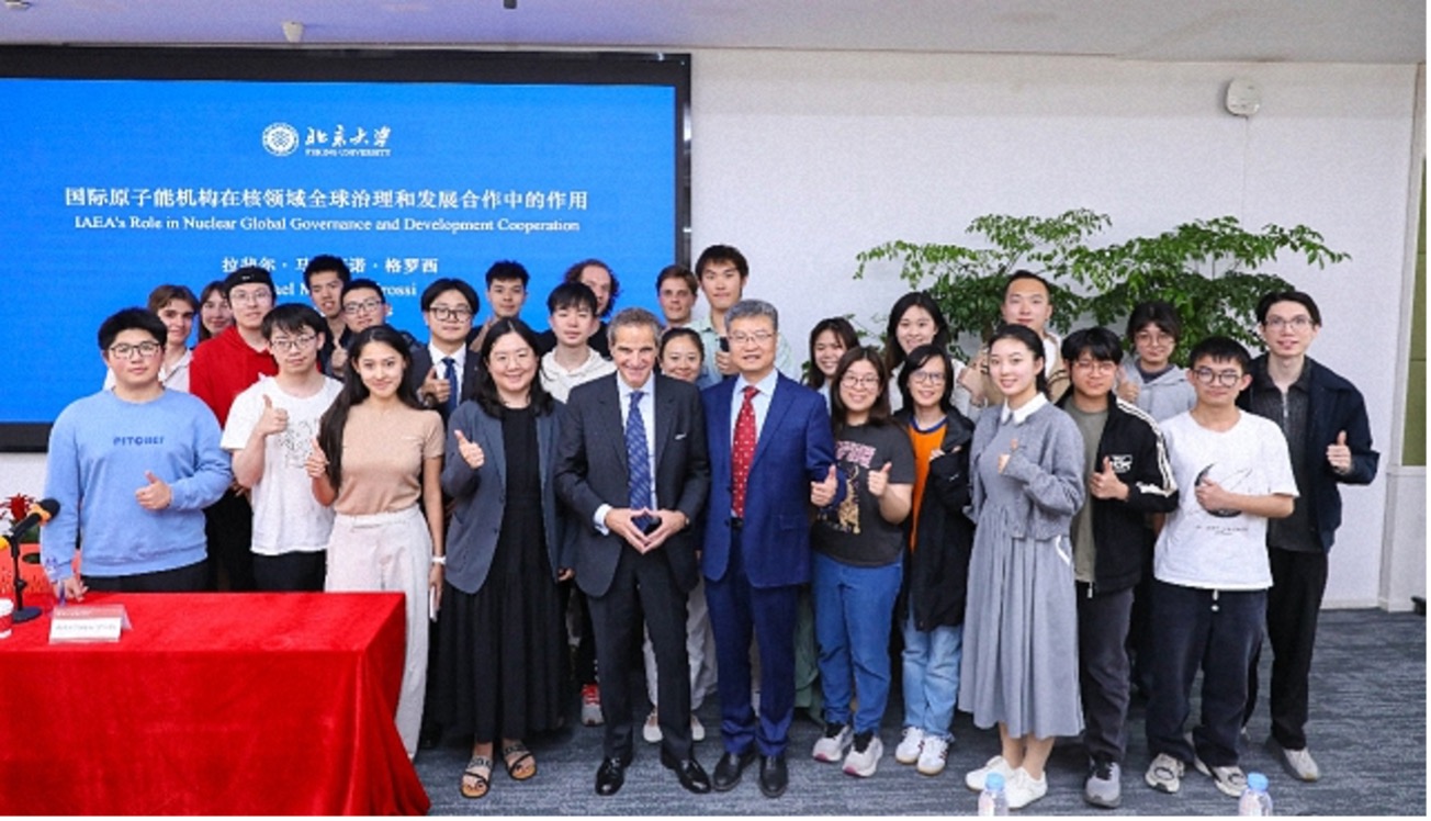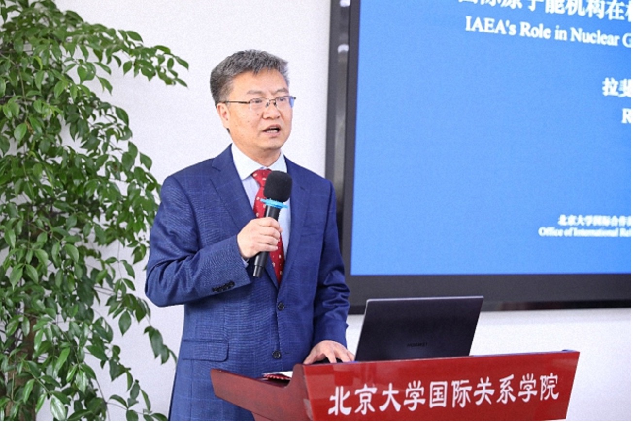 After the meeting, Director General Grossi delivered a lecture titled “The Role of the IAEA in Global Governance and Development Cooperation in the Nuclear Field” in Classroom C307. Vice Dean Zhang Haibin presided over the lecture. Tenured Associate Professors Chen Shaofeng and Luo Hang, along with over a hundred Chinese and international students from more than ten schools and departments of Peking University, attended the event.