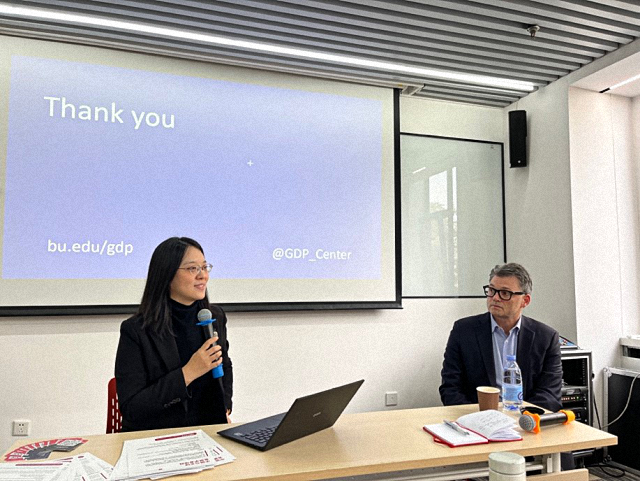 During the discussion session, Associate Professor Dong Zhaohua shared perspectives on structural challenges and risk management in global financial reform. The event concluded with an interactive dialogue where Professor Gallagher fielded student questions on topics ranging from central banking and green finance to China’s climate leadership and evolving multilateralism trends.