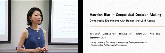 Subsequently, Professor Pang Xun systematically introduced a recent study led by her interdisciplinary team. The study used a randomized controlled experiment designed to identify the “hawkish bias” in foreign policy decision-making as a benchmark. It constructed 3,973 large language model (LLM)-based agents using demographic variables of human subjects from the experiment, replicating individual and group decision-making scenarios from the original experiment through single-agent decisions and multi-agent systems. The study observed whether the agents replicated, amplified, mitigated, or complicated three types of hawkish biases observed in human decision-makers: “loss framing effects,” “intent bias,” and “reactive devaluation.” The findings revealed that, like human decision-makers, LLM agents exhibit heuristic biases in information-scarce and unstructured decision-making contexts. However, the patterns of these biases differ significantly from human cognitive biases in both mechanisms and manifestations, making them difficult for humans to understand and predict. Professor Pang Xun further analyzed that while human biases often stem from psychological shortcuts and emotional impulses, LLM agents' biases are more likely to arise from embedded stereotypes and oversensitivity to linguistic cues in experimental designs. The study suggests that the current application of AI in political decision-making carries significant risks, potentially complicating geopolitics and increasing uncertainty.