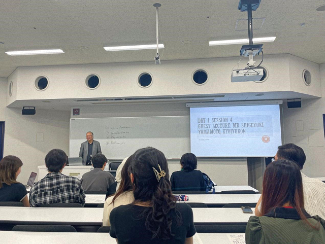 Beyond field visits, students also attended expert lectures. Mr. Shigeyuki Yamamoto, head of the local volunteer group Kyōjūkon in Shin-Okubo, gave a talk on community planning and development, tracing the growth of immigrant populations in Shinjuku and the transformation of Shin-Okubo into a “tourist destination.”