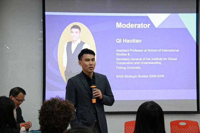 The event was moderated by Dr. Qi Haotian, Assistant Professor in the Department of National Security Studies at SIS and Secretary-General of the Research Base for Sino-Foreign Humanities Exchange. Prof. Wang Dong, Professor at SIS and Executive Director of the Base, delivered the opening remarks and extended a warm welcome to the participants. On behalf of SAIS, Dr. David Janoff Bulman, Assistant Professor of China Studies and International Affairs, also gave opening remarks.