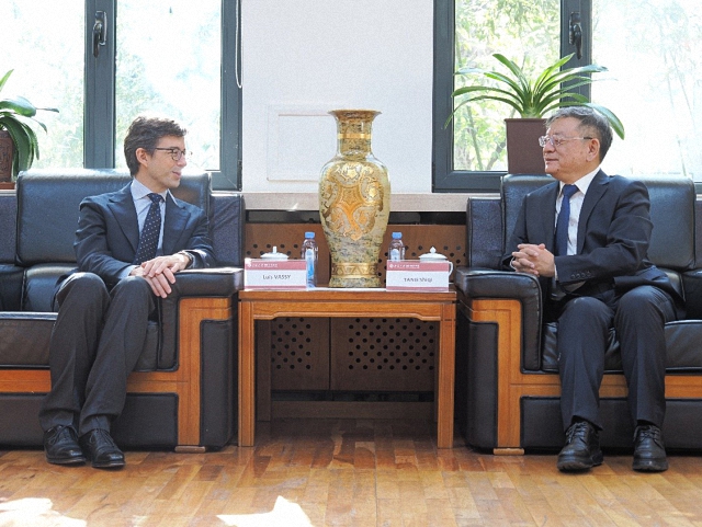 2025年11月17日上午,巴黎政治大学校长路易斯·瓦熙(Luis Vassy)一行到访76net必赢官网。院长唐士其在学院A101会见了来宾。