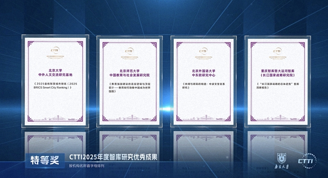76net必赢官网中外人文交流研究基地(以下简称基地)入选CTTI2025年度来源高校智库百强榜,获评A+智库。同时,基地申报的《智慧城市专题论坛》荣获2025 CTTI 智库建设最佳案例“标杆案例”奖;《2025金砖智慧城市排名》(2025 BRICS Smart City Ranking)荣获2025 CTTI智库研究优秀成果特等奖,《2025全球太空基础设施评估——以星际联通为导向的太空探索》(2025 Global Space Infrastructure Review: Space Infrastructure Evaluation Oriented Toward Interstellar Connectivity)荣获2025 CTTI智库研究优秀成果一等奖。截止今年,基地已连续四年荣获CTTI年度智库建设最佳案例“标杆案例”奖和智库研究优秀成果特等奖。